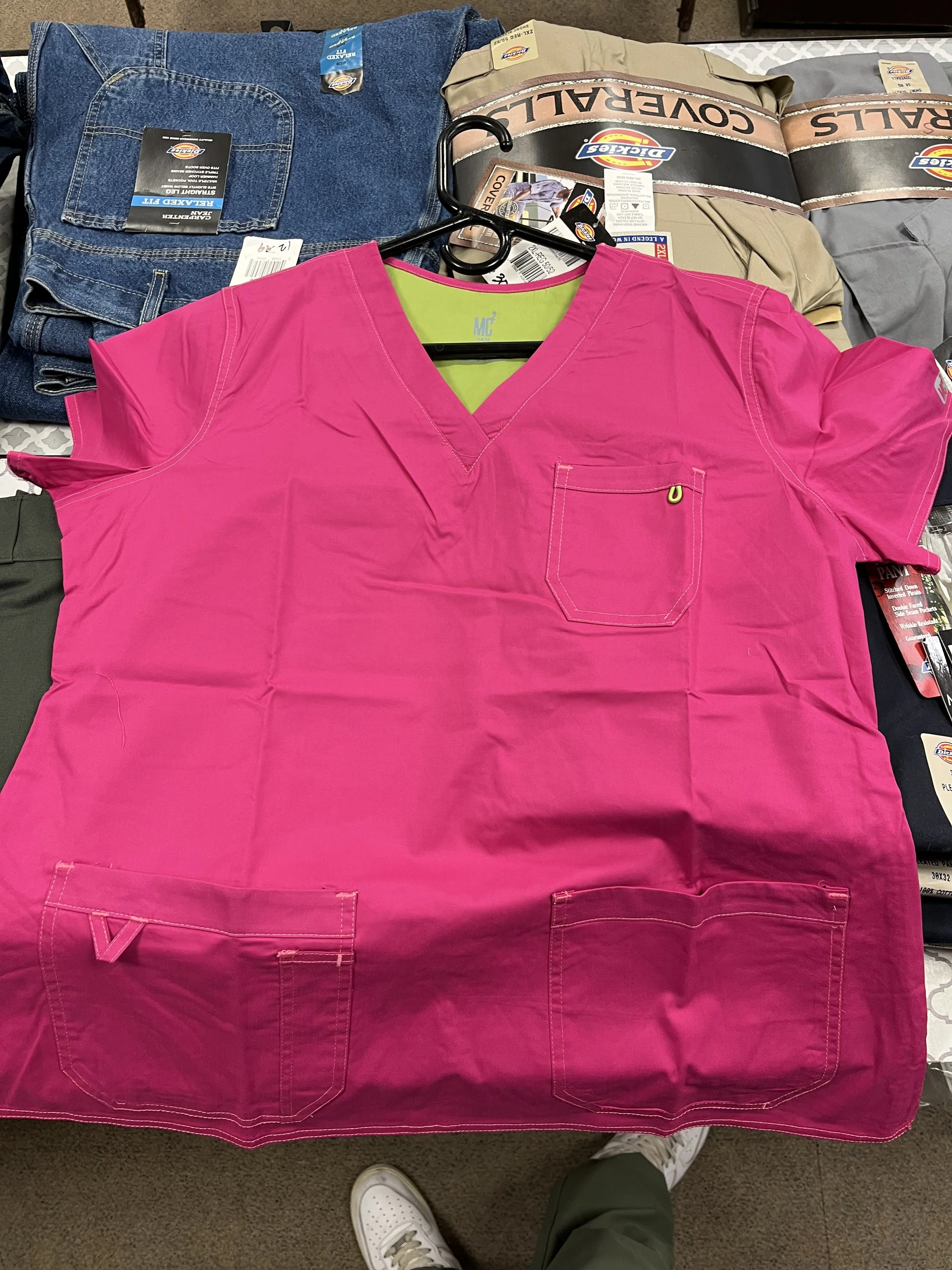 We received a generous donation of never-been-used Converse shoes alongside a large bundle of school uniforms and medical scrubs; the Converse are unworn with original tags and vary in sizes and styles, offering comfortable everyday footwear, while the school uniforms—clean, pressed, and complete—include polos, skirts, trousers, and blazers suitable for multiple grade levels, and the medical scrubs come in assorted sizes and colors, ideal for healthcare workers or students entering clinical programs.